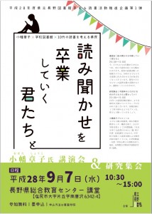 HOME > つながる信州の図書館 > 公共図書館・学校図書館・市町村と共に > 研修会等アーカイブ > 平成28年度子ども読書活動推進企画第1弾「読み聞かせを卒業していく君たちと」