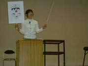 毎年四月に県立図書館で開催される「お話フェスティバル」へ参加し、絵本の読み聞かせ、ペープサート、紙芝居を発表。また、町内の保育園や小学校に出向き読み聞かせを実施している。そんな中で、読み聞かせの実践は経験のない会員も多く、これから勉強していかなければと思っていた矢先に基本的なレッスンを受ける機会を得た。ある程度の人数の前で読み聞かせをするということは、それなりの訓練が必要となり腹式呼吸で安定した音量の声出しが必要となる