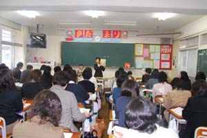 2年前から図書委員会主催で年2回ほど実施してきている図書館講座を一般公開にした。講座の内容はアメリカ留学体験記、詩のボクシング、裁判所・裁判員制度のしくみ、気候の異変、よみきかせなど多岐にわたっている。新聞に記事を出したり、市役所の市民コーナーにチラシを置いたりして市民へのPRも行っているためか、参加者は十数名から60名ほどにもなる。