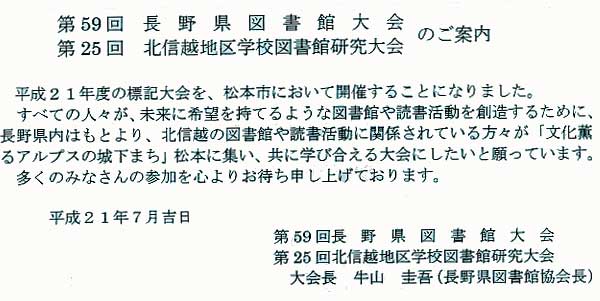 長野県図書館協会 > 長野県図書館大会 > 平成21年度第59回長野県図書館大会記録
