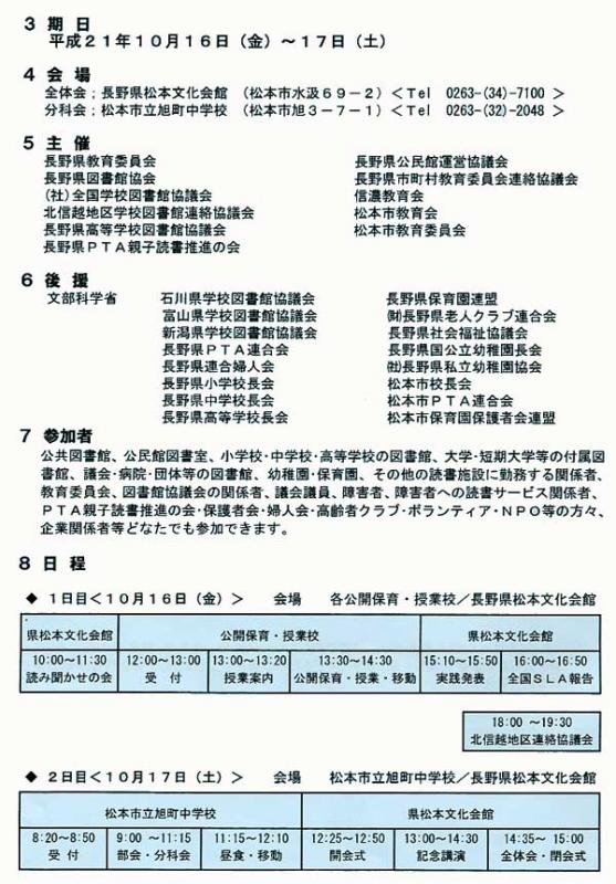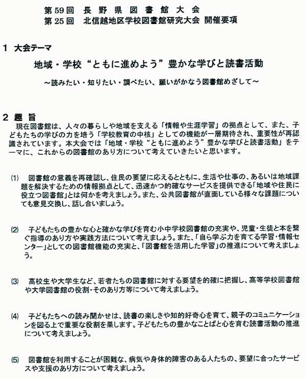 長野県図書館協会 > 長野県図書館大会 > 平成21年度第59回長野県図書館大会記録 > 開催要項1