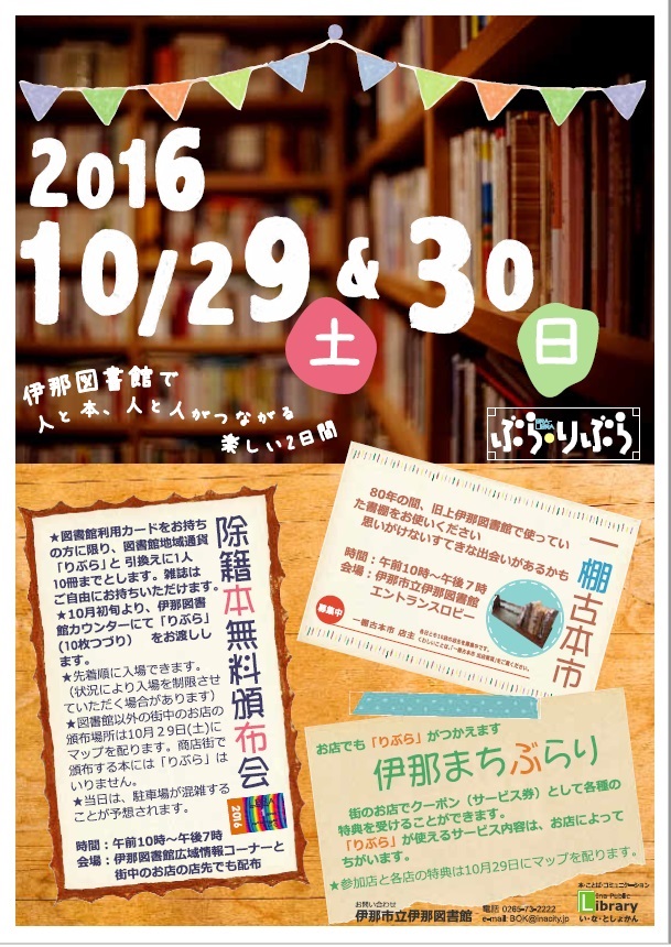 ■会場: 伊那図書館広域情報コーナーと街中のお店の店先でも配布