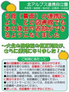 【チラシ】「北アルプス連携自立圏5館相互利用がさらに便利になりました!」(PDF)