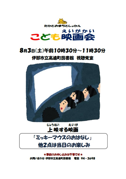 - 場所: 伊那市立高遠町図書館 視聴覚室