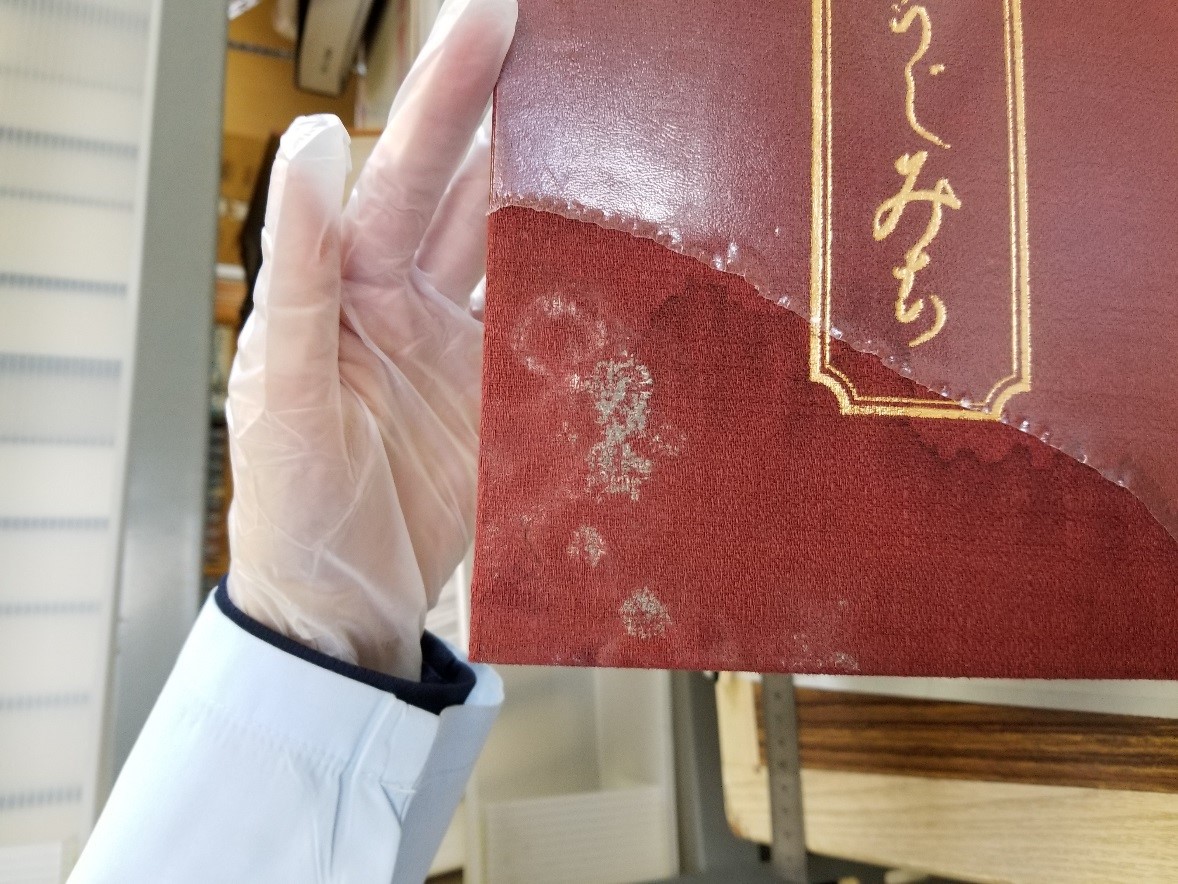(2)ブックコートフィルムの下で発生しているカビ